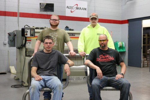 The stainless-steel bench will live in the Industrial Building office reception area in room I-156. Students Kyle Burkowski, Colton Ruidl, Tyler Cebula and Michael Gibby designed the bench from a photo they were shown by WCTC Manufacturing Technologies Associate Dean Bob Novak. The students sketched the bench and made a 3-D computer model before cutting, bending and welding the steel.