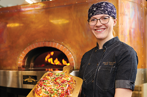 Schleef joined the Twisted Fire team before the restaurant opened, helping with all stages of planning. Her input shaped decisions for plateware, kitchen design, equipment and “lists and lists and lists of all the things we would need for opening, hiring, interviewing, meeting with vendors and even the difficult task of wine tasting,” chuckled Schleef. She started out as sous chef and was promoted to head chef in March of 2019. “It was definitely an easy transition becoming the head chef, Culinary grad leads with learning at Oconomowoc’s Twisted Fire restaurant because I was already such a part of most of those big decisions.”