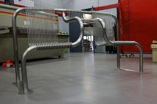 The stainless-steel bench will live in the Industrial Building office reception area in room I-156. Students Kyle Burkowski, Colton Ruidl, Tyler Cebula and Michael Gibby designed the bench from a photo they were shown by WCTC Manufacturing Technologies Associate Dean Bob Novak. The students sketched the bench and made a 3-D computer model before cutting, bending and welding the steel.