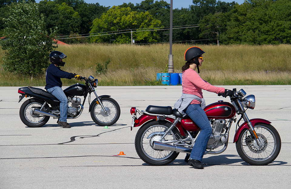 This course is intended for novice motorcycle riders and involves six hours of classroom time and 10 hours of on-cycle instruction to learn the necessary skills for safe cycle operation. Emphasis is placed on motorcycle controls, rider decision making, basic riding skills and maneuvering, and basic street riding. The course uses program materials from the Motorcycle Safety Foundation (MSF), and motorcycles are provided for students.